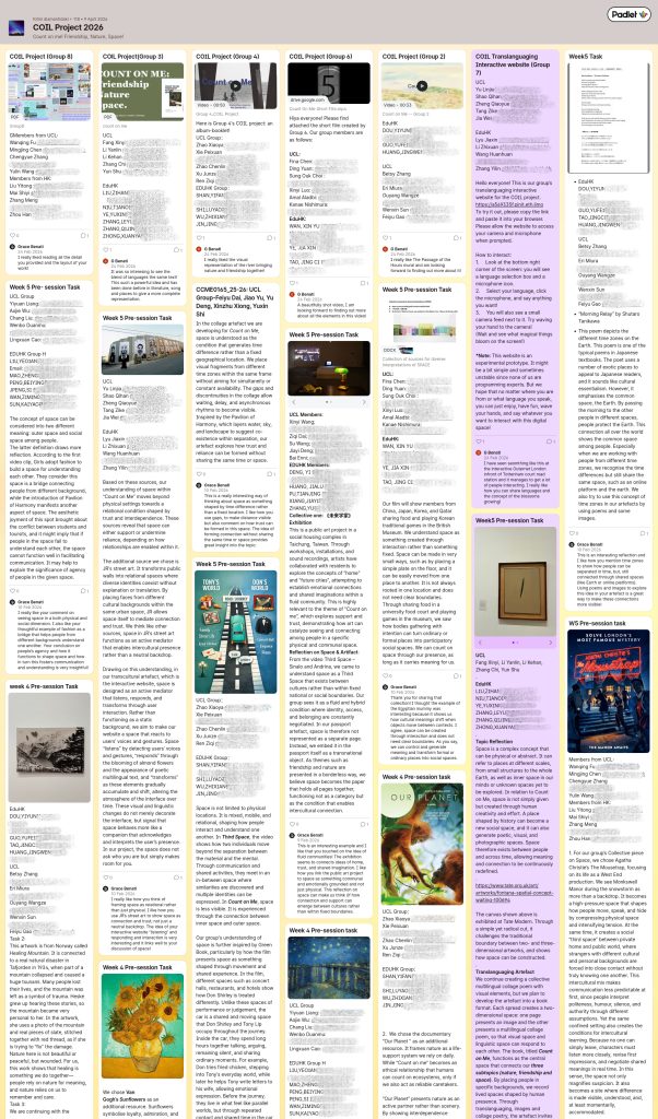 During the reading week at UCL (week of 16 February), students continued working independently within their transcultural groups to finalise their artefacts and, for UCL students, prepare presentation materials that integrated creative outputs with critical reflection on intercultural learning and translanguaging practices.